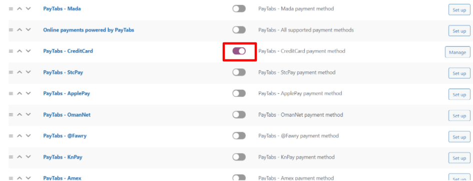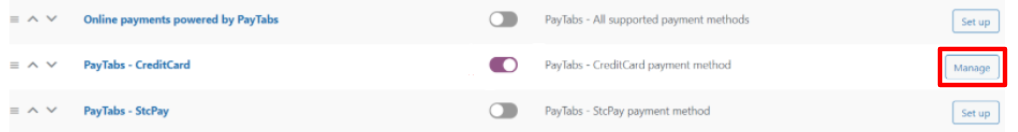٥ - بعد ذلك , أنقر فوق الزر "إدارة " ،لإعداد طريقة الدفع التي قمت بتفعيلها