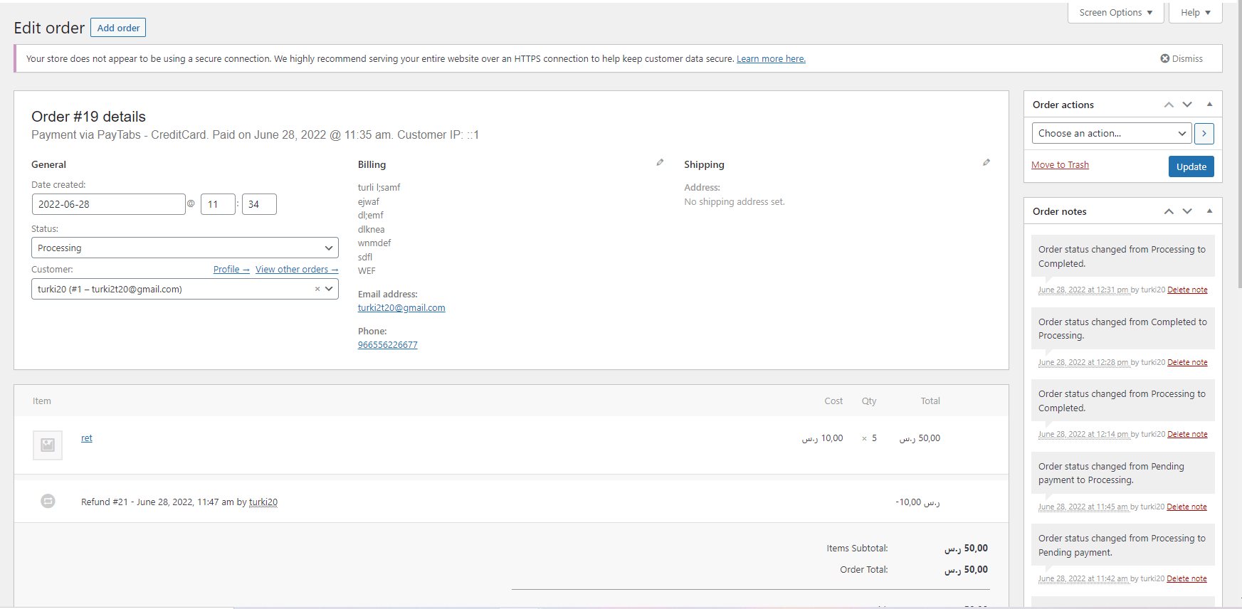 سيتأثر طلب ووكومرس بهذا الإجراء وسيتم ربطه بمعاملة "إتمام الحجز Capture" الجديدة التي تم إجراؤها على لوحة تحكم بيتابس الخاصة بك.