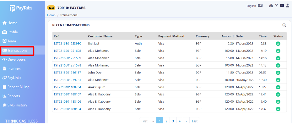 - انتقل إلى قائمة "المعاملات " من لوحة التحكم كم هو موضح أدناه: