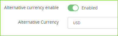 ٤- ثم حدد "تمكين العملة البديلة" وأضف العملة البديلة داخل الحقل الخاص بها. (تختلف عن عملتك الرئيسية في لوحة التحكم)