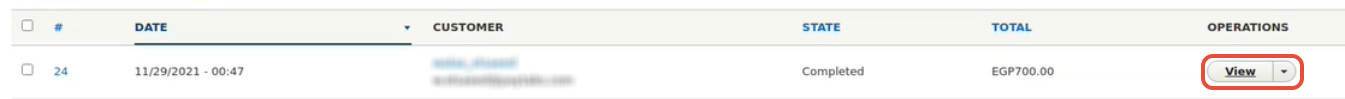 - Then click on the "View" button under the "Operations" column for the chosen order you want to capture its amount.