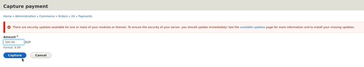 This article is dedicated to walking you through how to capture a transaction related to one of your Drupal orders. You should know that Only if you had configured the Payment Action on your configurations (Drupal Plugin | Transaction Type [Pay Page Mode]) to be "Authorize".